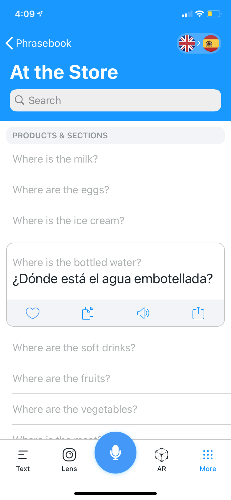 It supports over 100 languages in speech-to-speech and text-to-text modes. Besides reading out the translated text, voice translation mode also shows the transcription in both languages. Users can select between different voices and adjust the voice speed. Apart from unlimited translations in online and offline modes, the premium plans also include an extended phrasebook. The app can also detect the objects and translate text from photos in the AR mode.