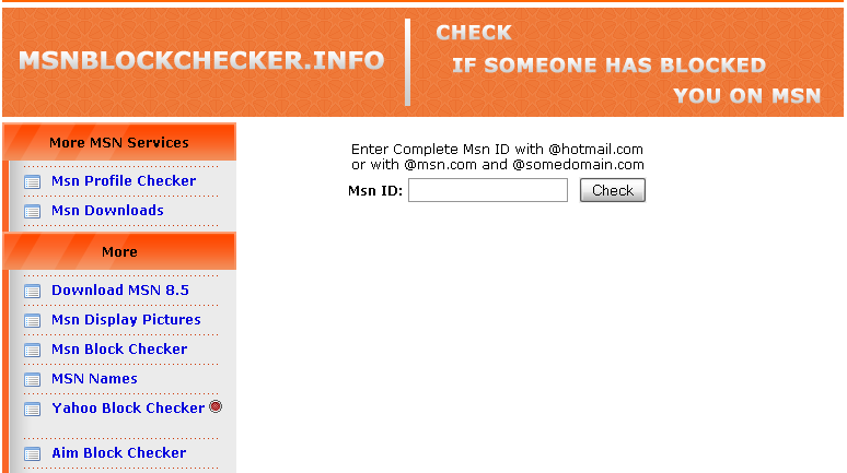 - Just click on Check to check the status, after this the online tool will contact Yahoo Server and will query the status whether the ID is in the block list or not. This tool also confirms whether your friend has blocked his actual status from being shown to you or not.