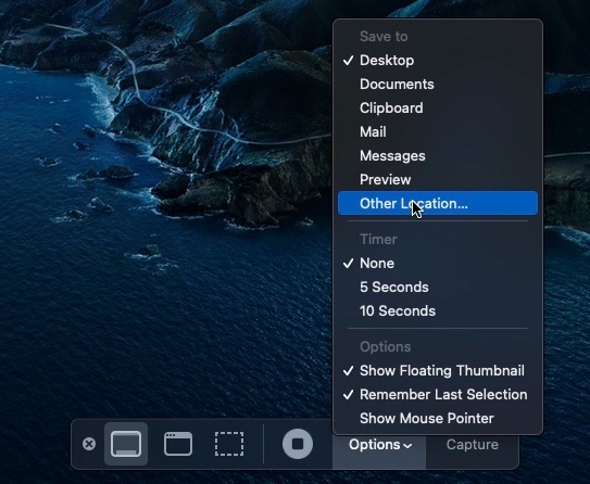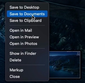 By default, macOS also shows a small preview of the newly captured thumbnail, which Apple calls a floating thumbnail, on the bottom right corner for about five seconds. Users can right-click on the floating thumbnail to change the save location just for that screenshot.