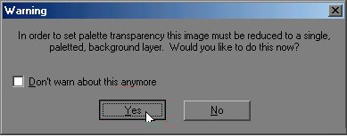 - Now, after setting the pallete transparency as shown above you can see that image has more than 256 colors, now a message will come up asking you to reduce the image to a single, palleted, background color, here you just have to click on YES as seen in the above figure. Now, after this you need to then Decrease color depth window which will come up, just click OK on that.